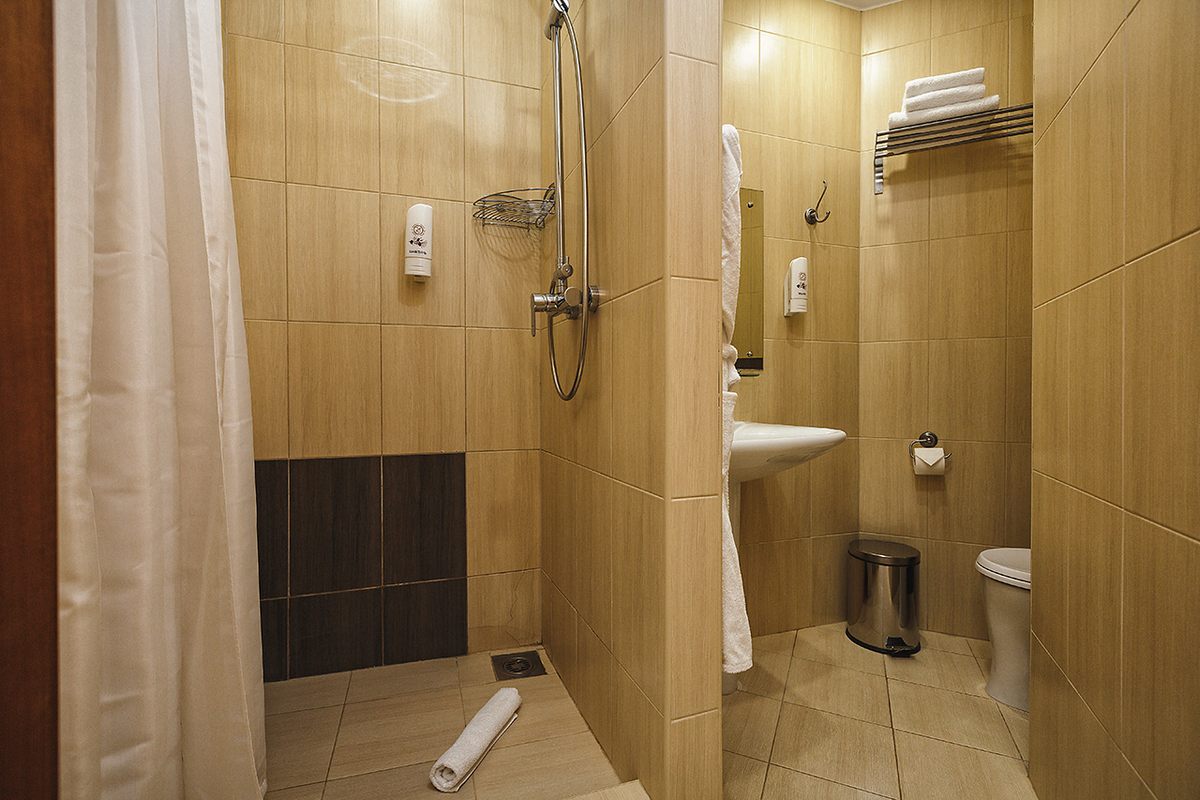 Санузел: душ, раковина, унитаз, биде, фен