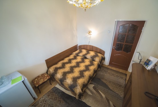 В номере: полутораспальная кровать, прикроватная тумбочка, встроенный шкаф, стол, кресло, телевизор, холодильник, телефон, набор посуды